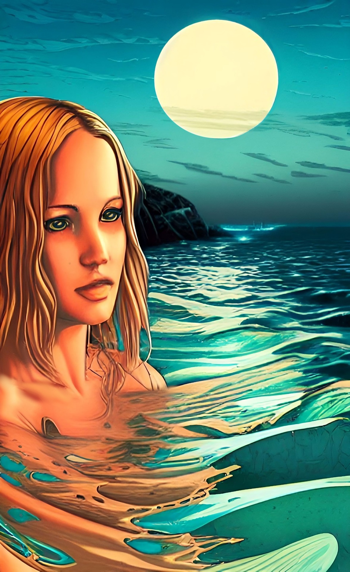 With decided steps, the girl moved to the edge of the platform. Immediately, she jumped high in the air and dived head-down into the dark-blue waves.